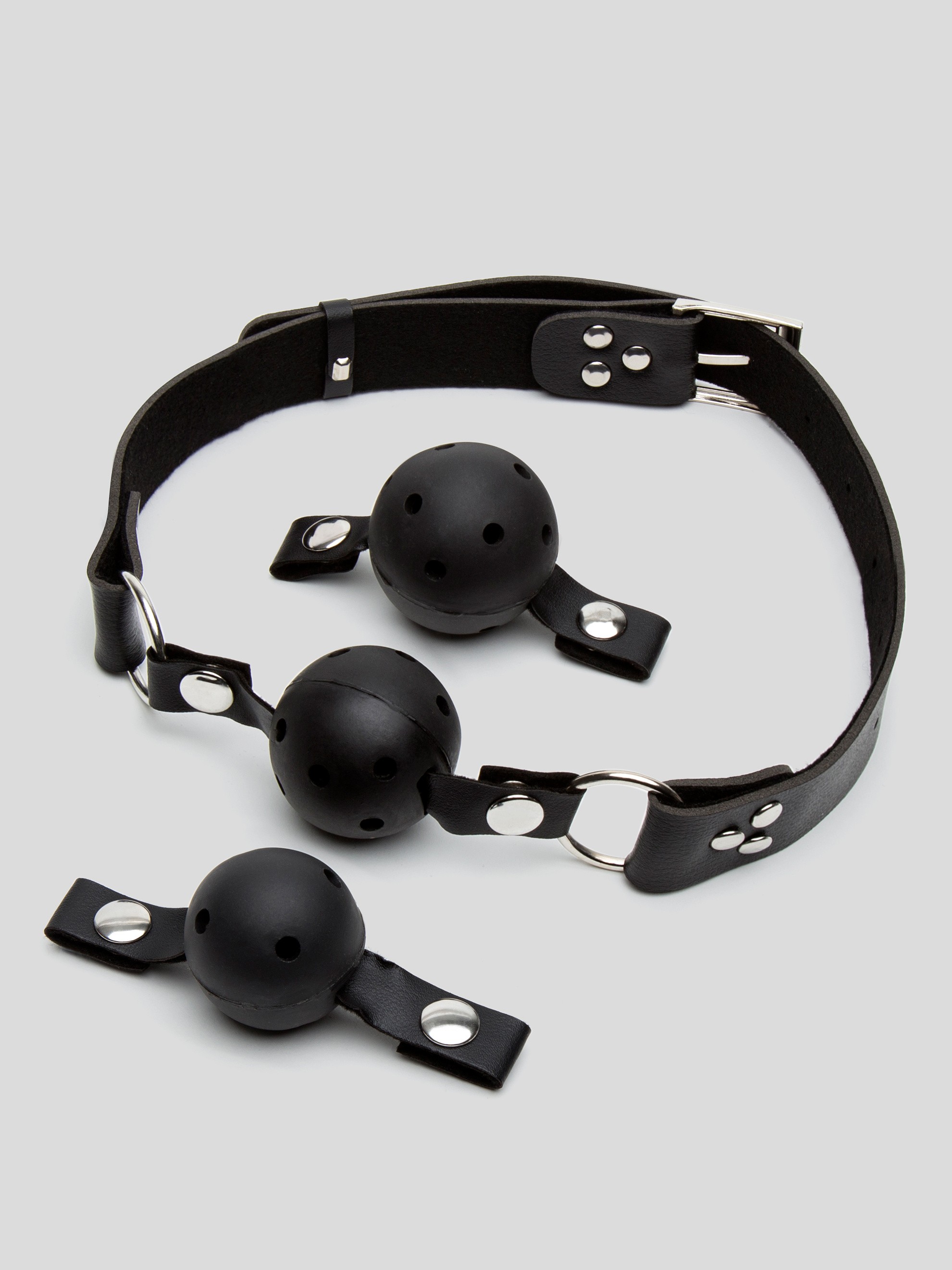 Progress ball gag play with this triple training system from Fetish Fantasy. Designed with an adjustable head strap and 3 interchangeable balls, customise play to suit you and your lover. Plus each ball is breathable making them perfect for beginners