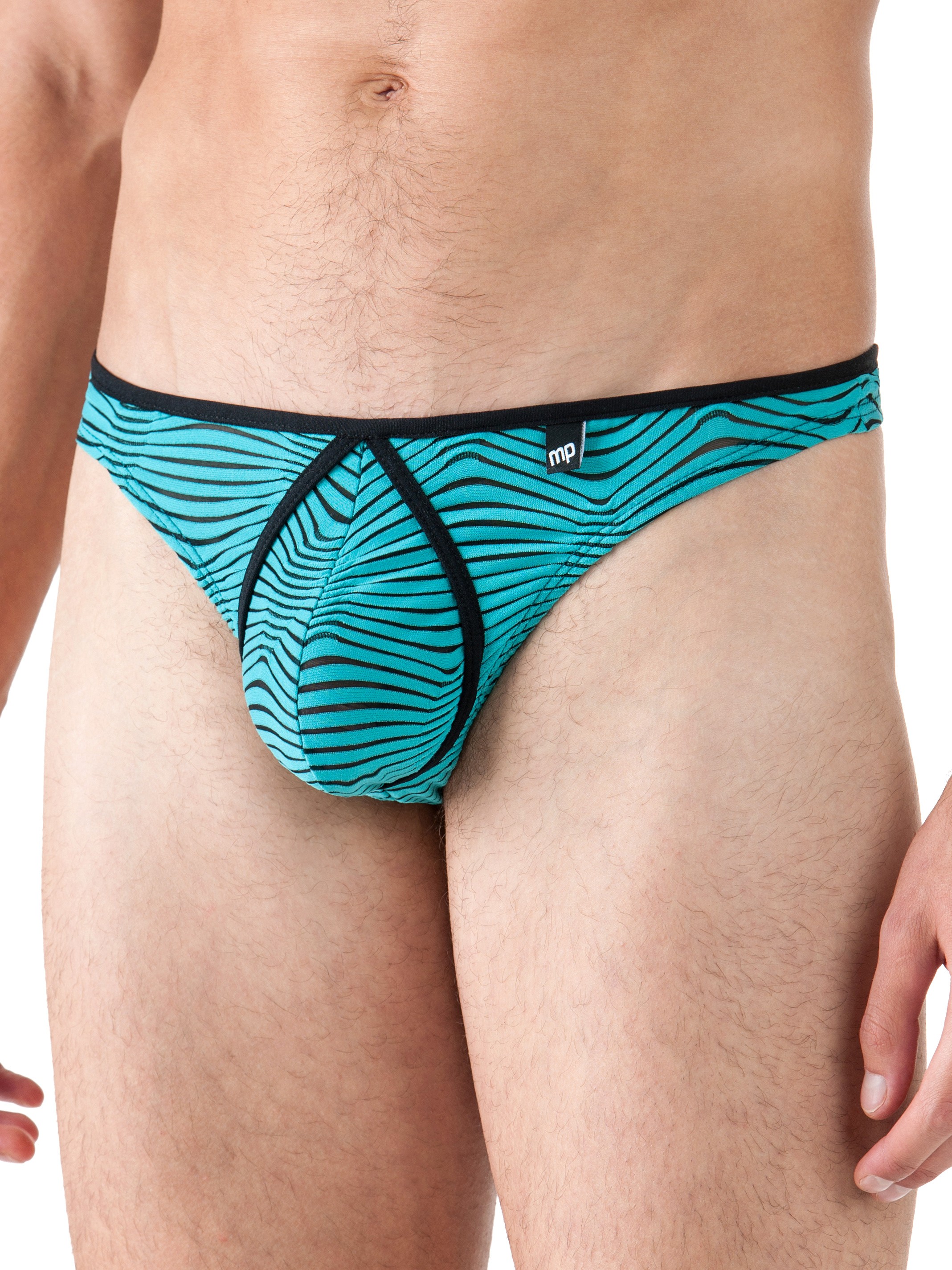 Earn your sexy stripes in cool teal, and let this semi-sheer thong give your lover a deliciously frustrating glimpse of your package. While a tailored pouch makes the most of your manhood, a barely there back displays your derrière for extreme sex appeal.