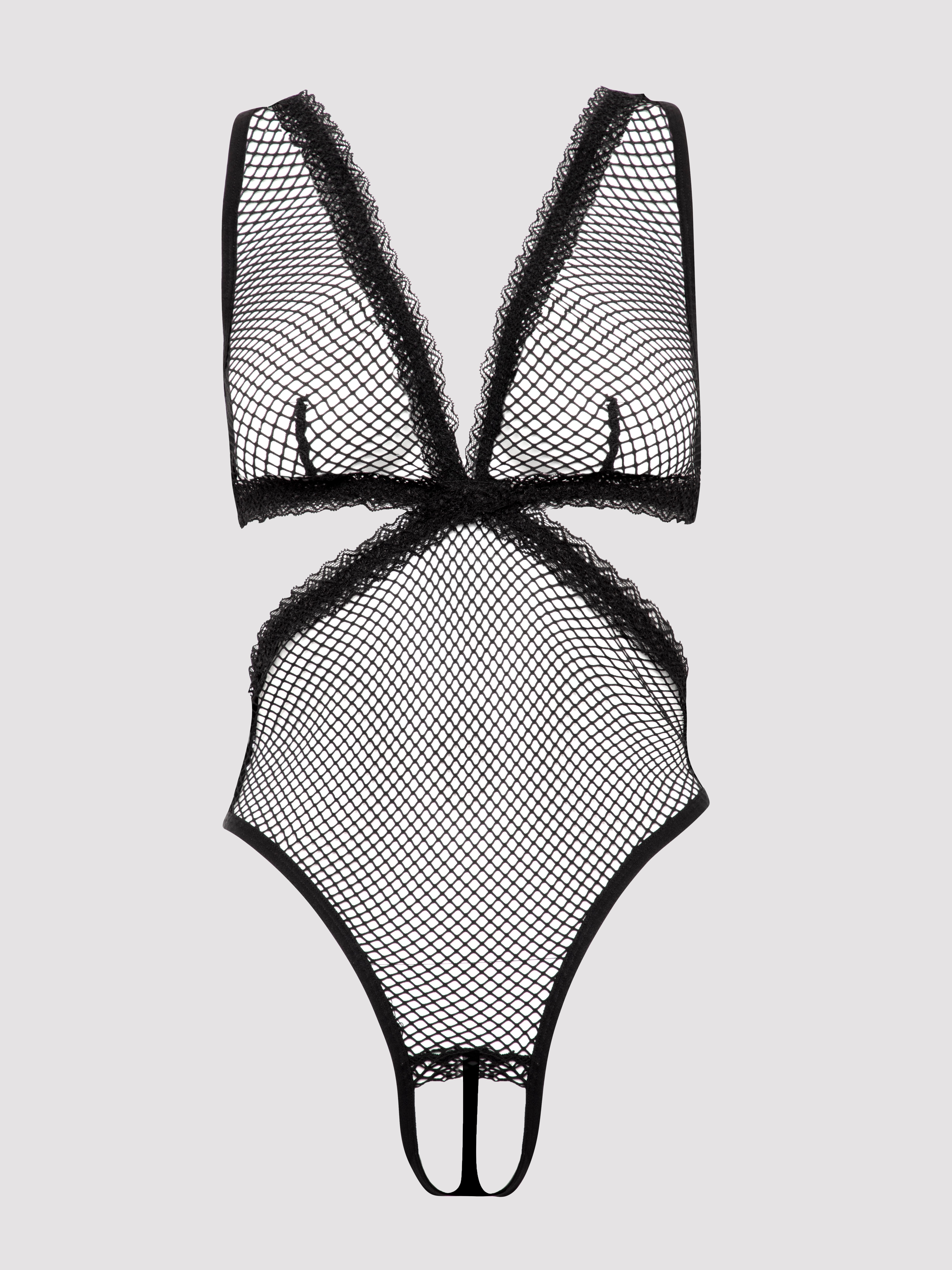 - Ultra-sexy and revealing fishnet and lace cutaway body for a sizzling bedroom look