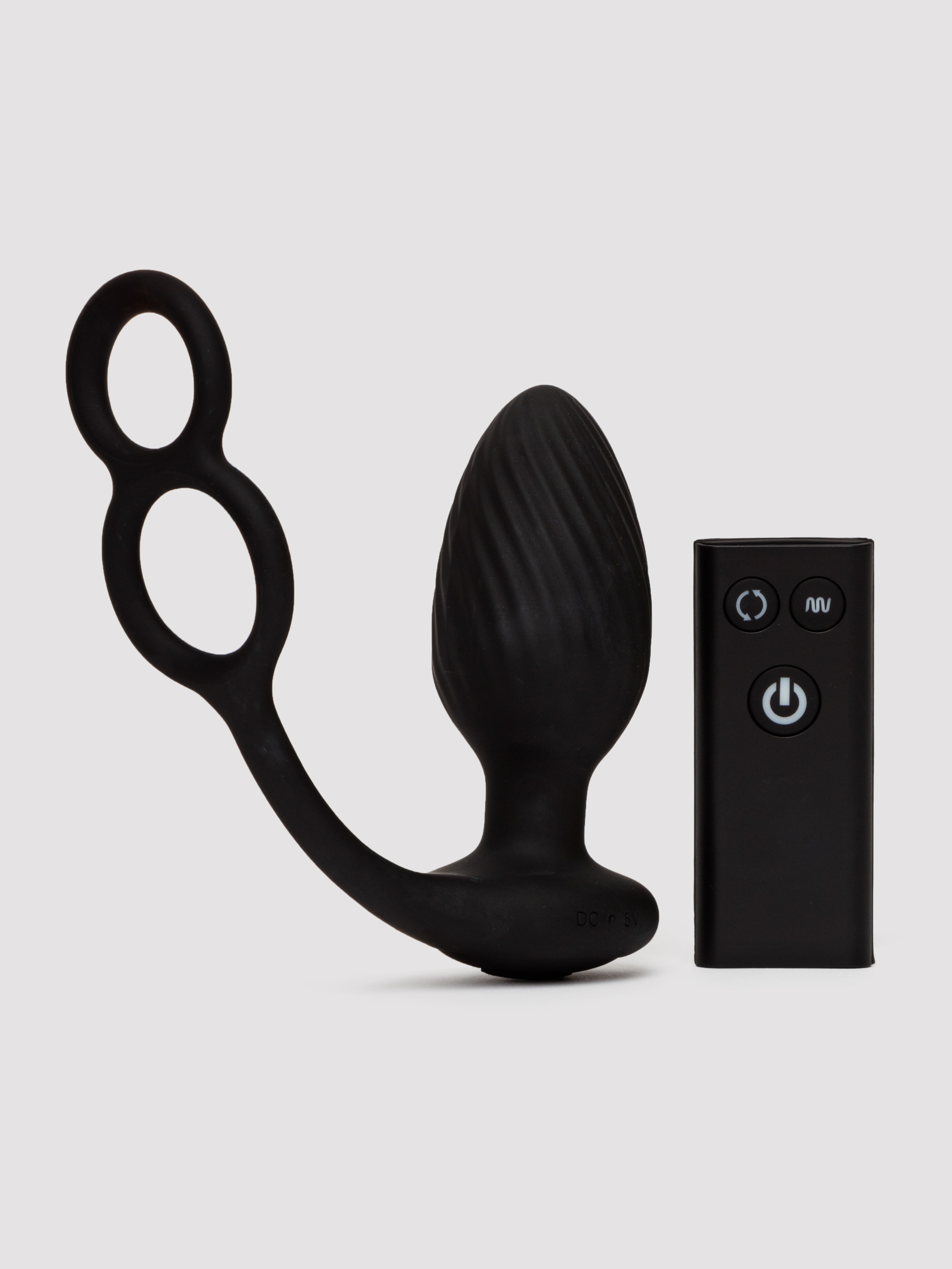 - Rechargeable rotating remote-controlled silicone butt plug with cock ring for intense sensations