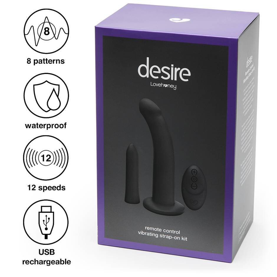 Are you and your partner ready to lose yourselves in unbridled passion and intimacy? Surrender to the blissful sensations offered by Desire's remote control vibrating strap-on kit, with 8 delicious patterns of waves and pulses and 12 levels of intensity.