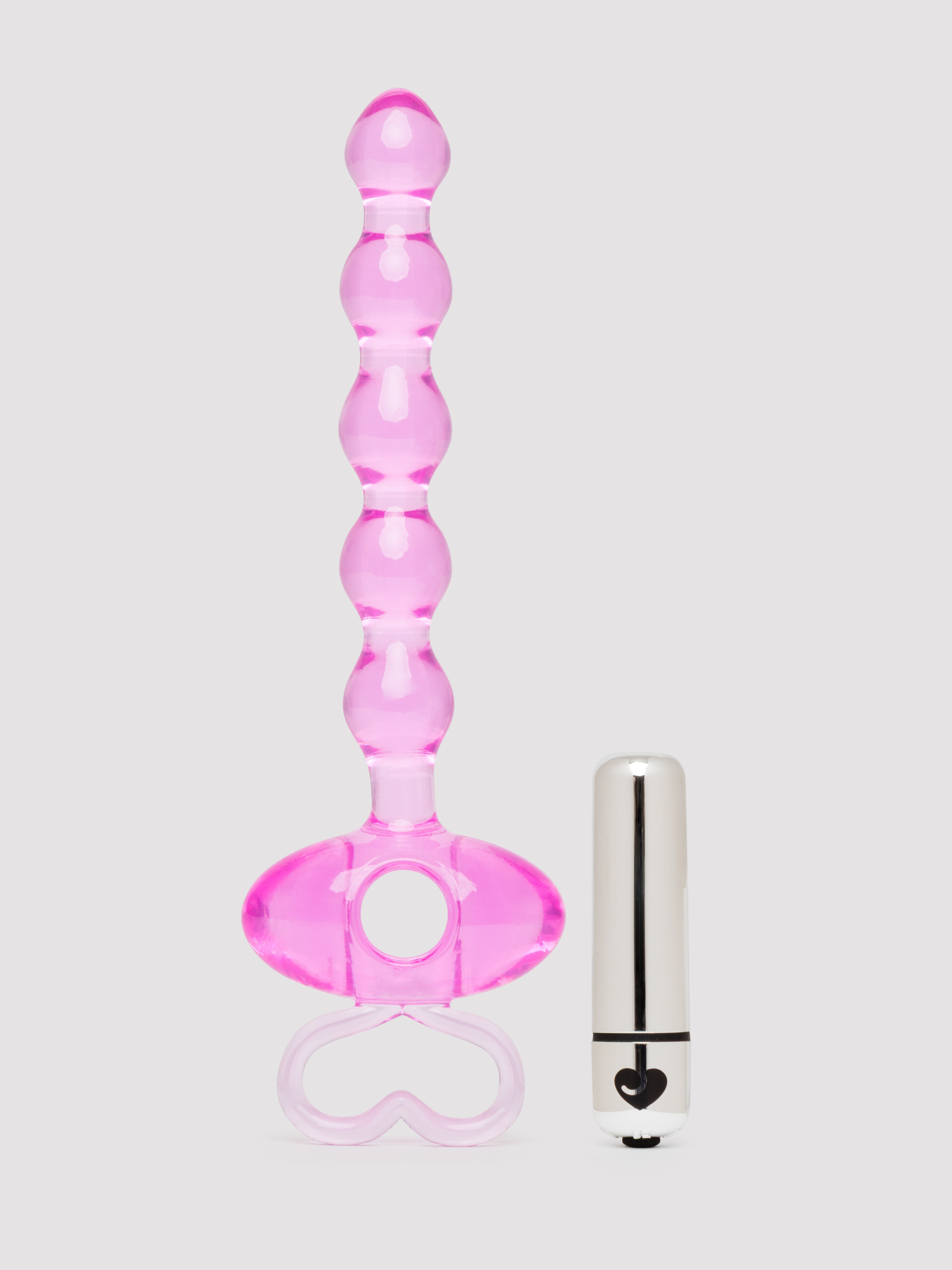Get your butt buzzing with these pink vibrating anal beads, designed to bring the love with an insertable length of 5.5 inches, a maximum girth of 3 inches, plus a cute love heart-shaped pull ring and flared base for worry-free fun.