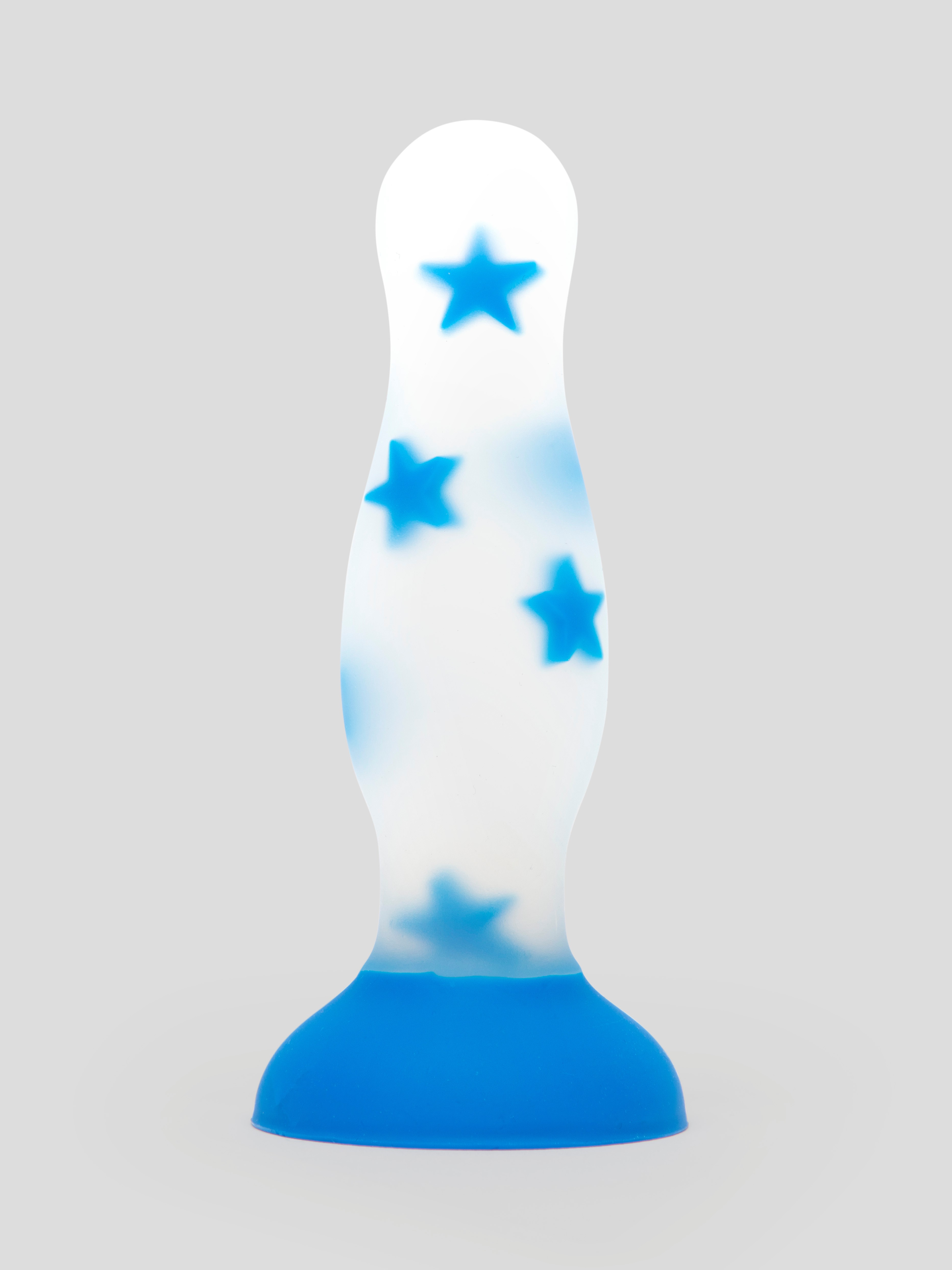Made from clear liquid silicone and peppered with blue stars, this plug has a soft rounded tip and a flared base – perfect for those just starting their anal adventures.