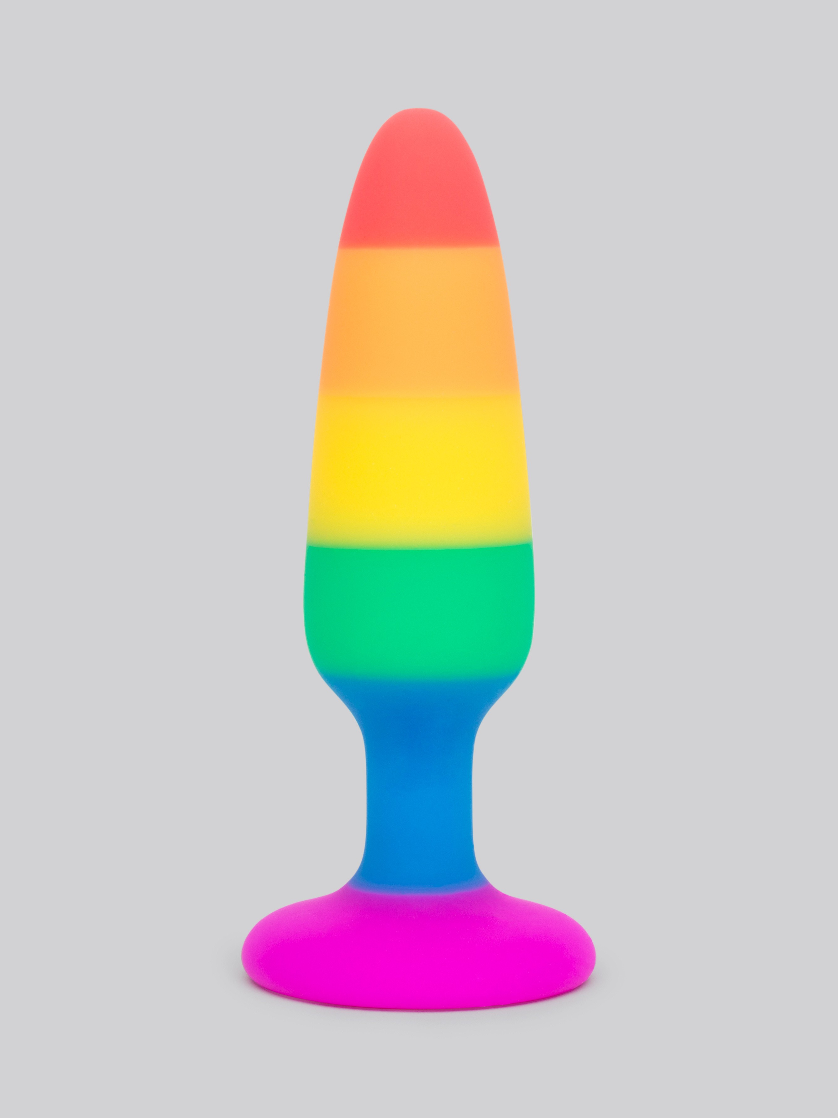 - Small rainbow butt plug with tapered tip for first-time anal play