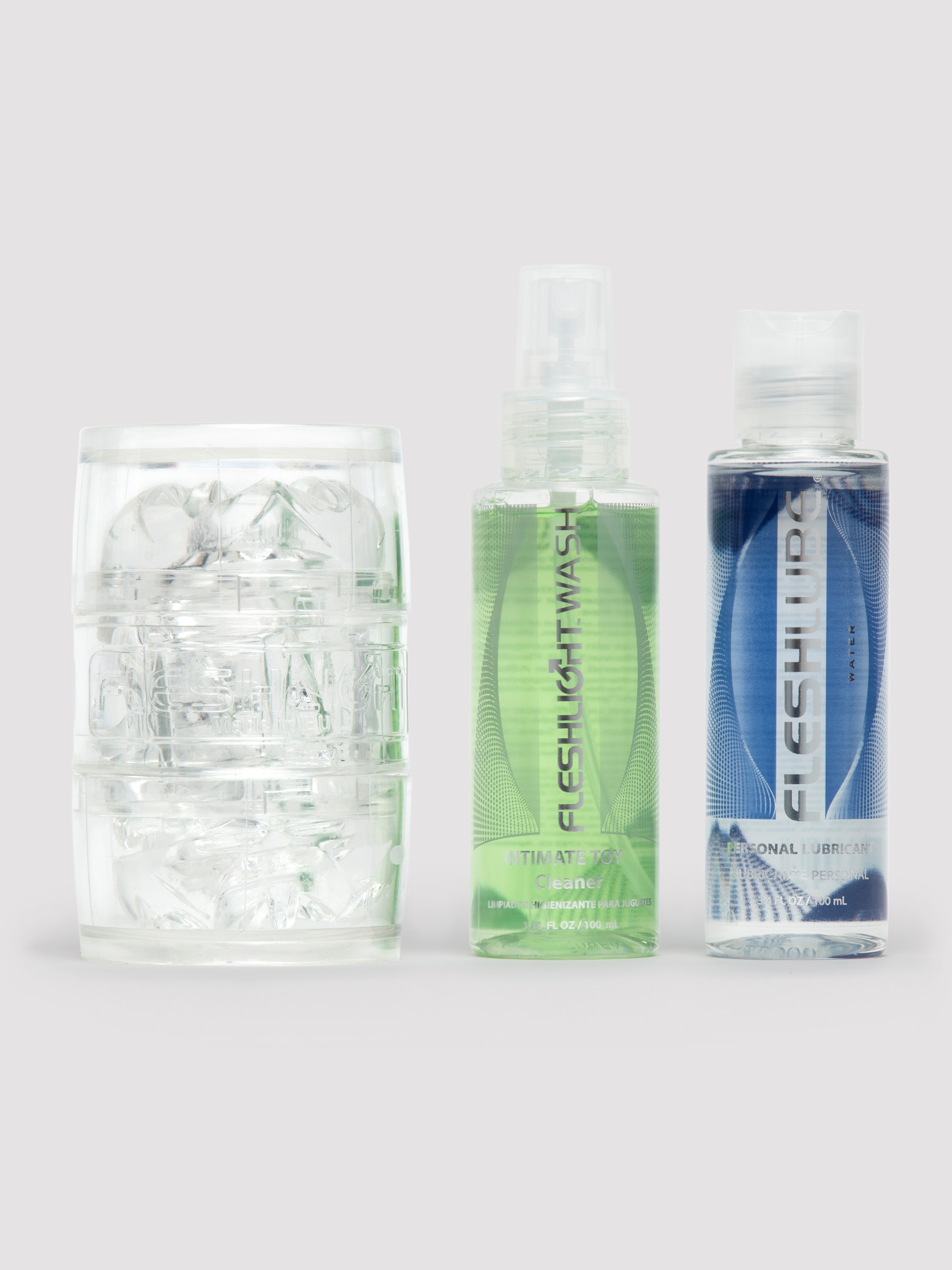 - Fleshlight QUICKSHOT combo pack featuring the QUICKSHOTVantage plus lube and sex toy cleaner